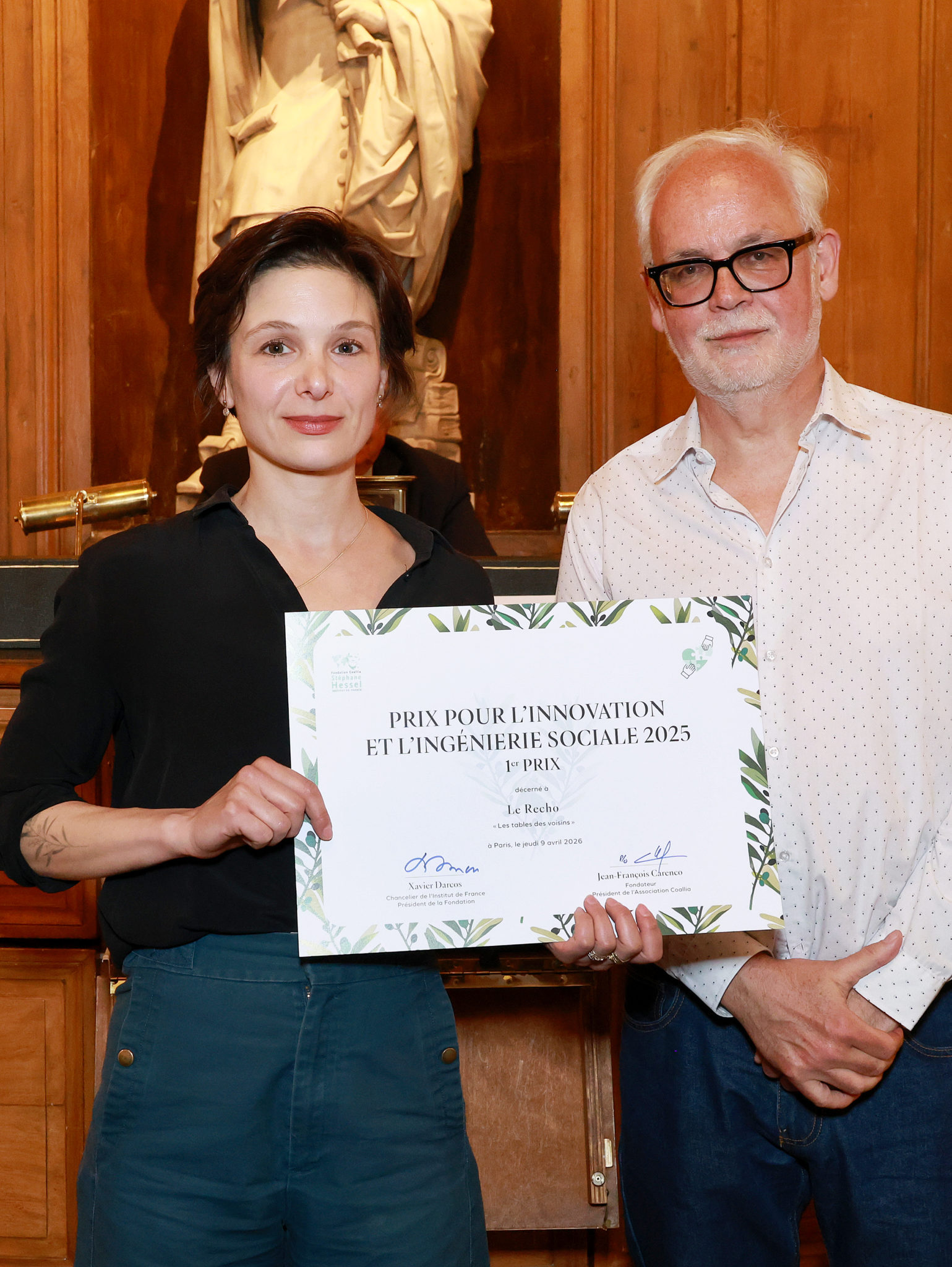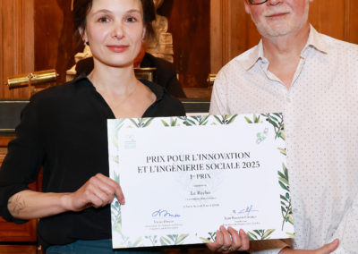 🥇 Le 1er prix d’innovation et d’ingénierie sociale a été attribué à l’association Le RECHO pour son projet La Table des voisins. Leur point de départ est limpide : retisser du lien pour des personnes en situation de précarité ou d’isolement. Concrètement, cela passe par des repas partagés dans des restaurants. Mais derrière cette simplicité, le projet repose sur un dispositif structuré, mêlant accompagnement social et pair-aidance, avec un objectif fort : faire des lieux du quotidien, de convivialité et de partage de véritables espaces d’inclusion.