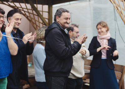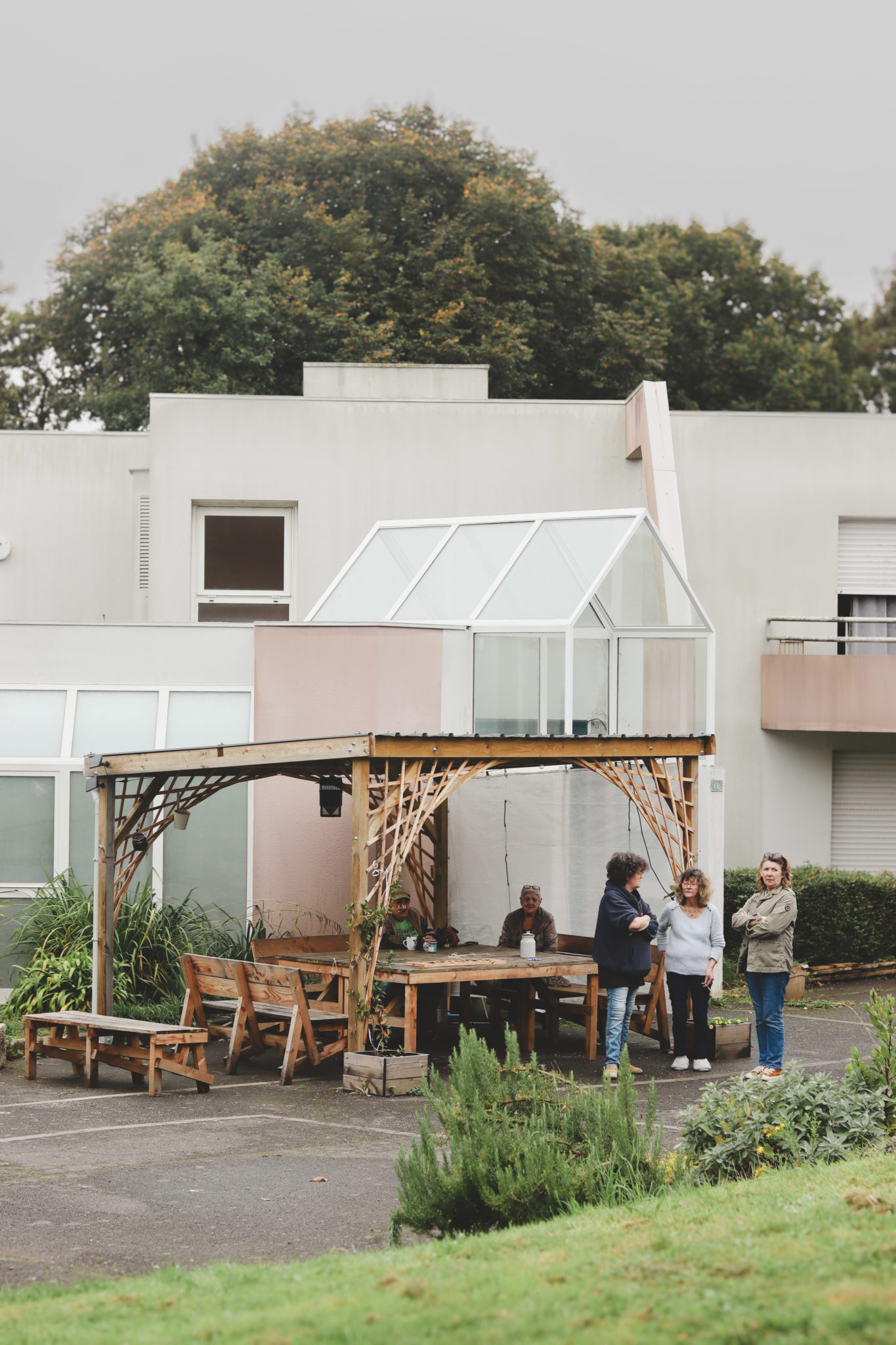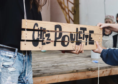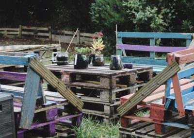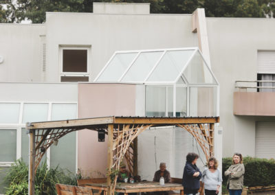 Accompagnés par les designers Erwan Roy et Morgane Grannec, les résidents de la pension de famille ont participé à toutes les étapes pour aménager les espaces extérieurs de l’établissement. De la conception à la construction, ils ont fabriqué leur propre mobilier. Ce qui était au départ une idée d’aménagement s’est muée en une aventure collective mêlant imagination, bricolage, partage des savoirs et renforcement des liens.
